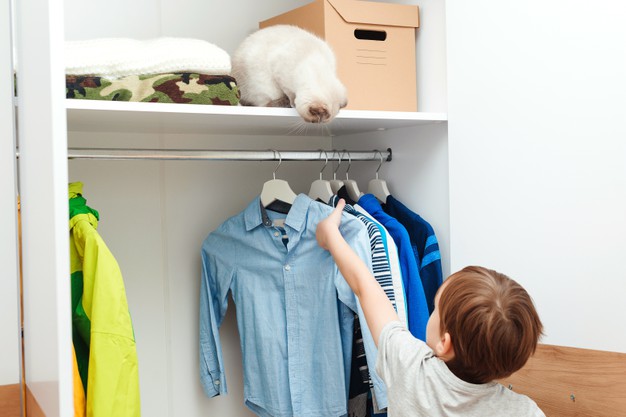 Tout d’abord, une chambre Montessori contient un dressing qui est à la hauteur de l’enfant. De cette façon votre petit garçon ou votre petite fille de 2, 3, 4 ans ou plus pourra faire comme ses chers parents et essayer de s’habiller tout seul.