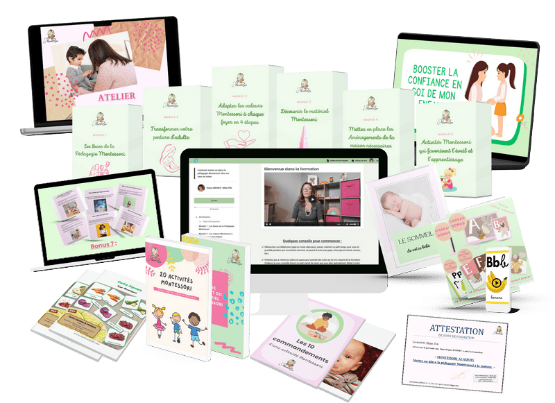 Si vous souhaitez vous former à la pédagogie Montessori, nous vous recommandons à minima de suivre cette formation : Mettre en place la pédagogie Montessori à la maison dès la naissance
